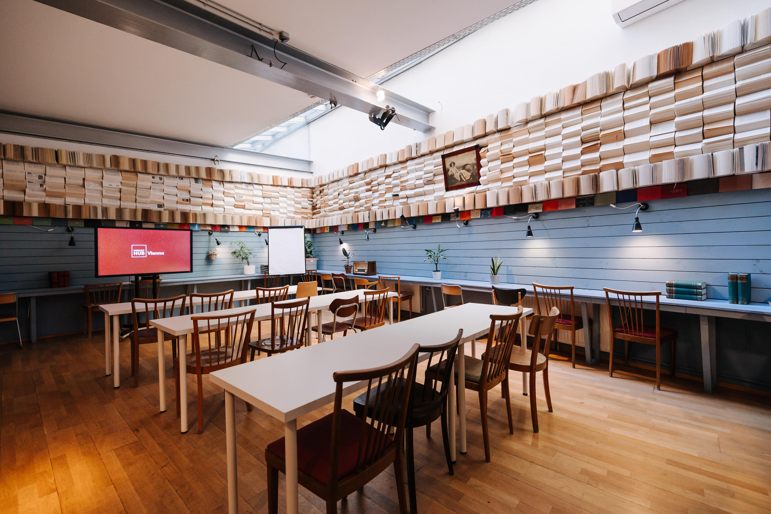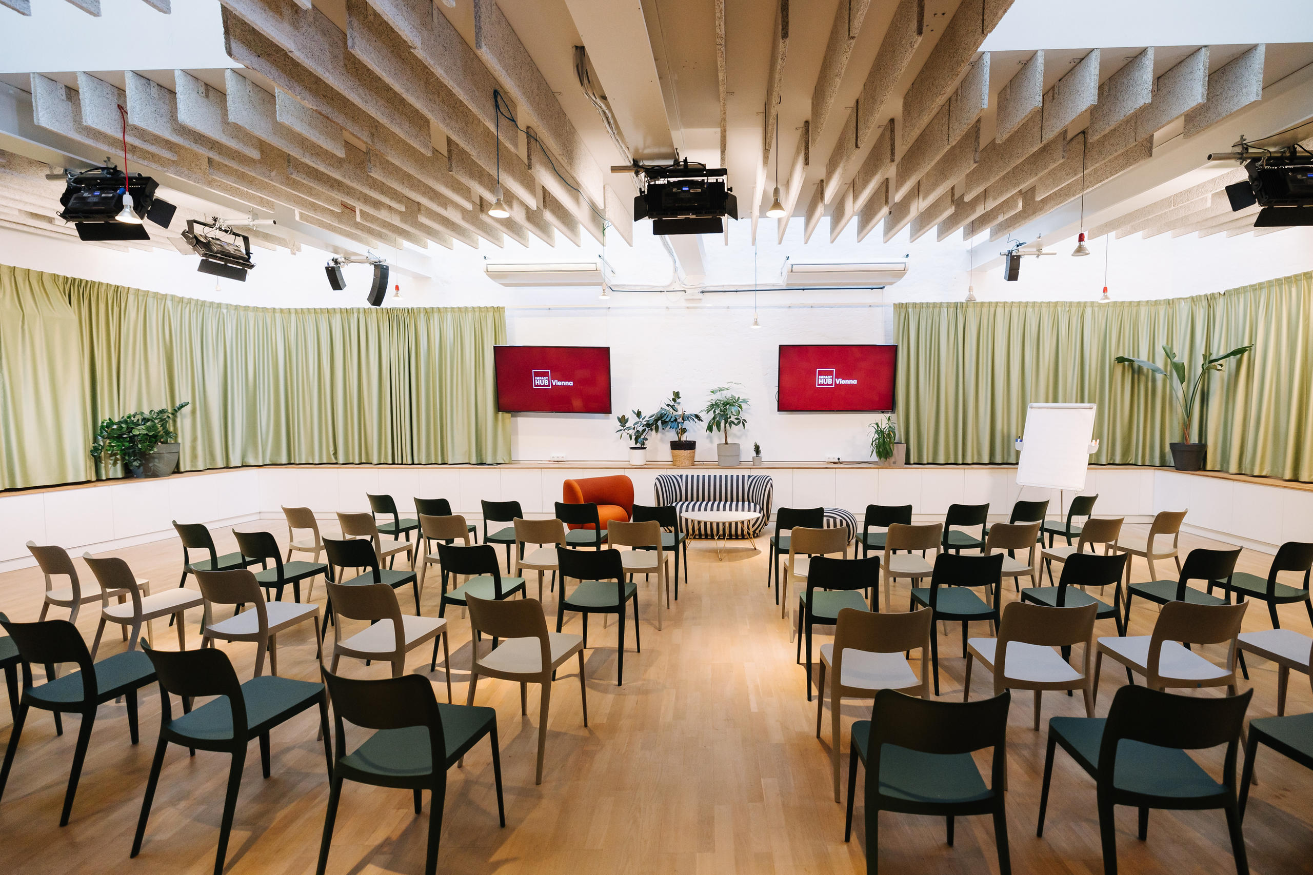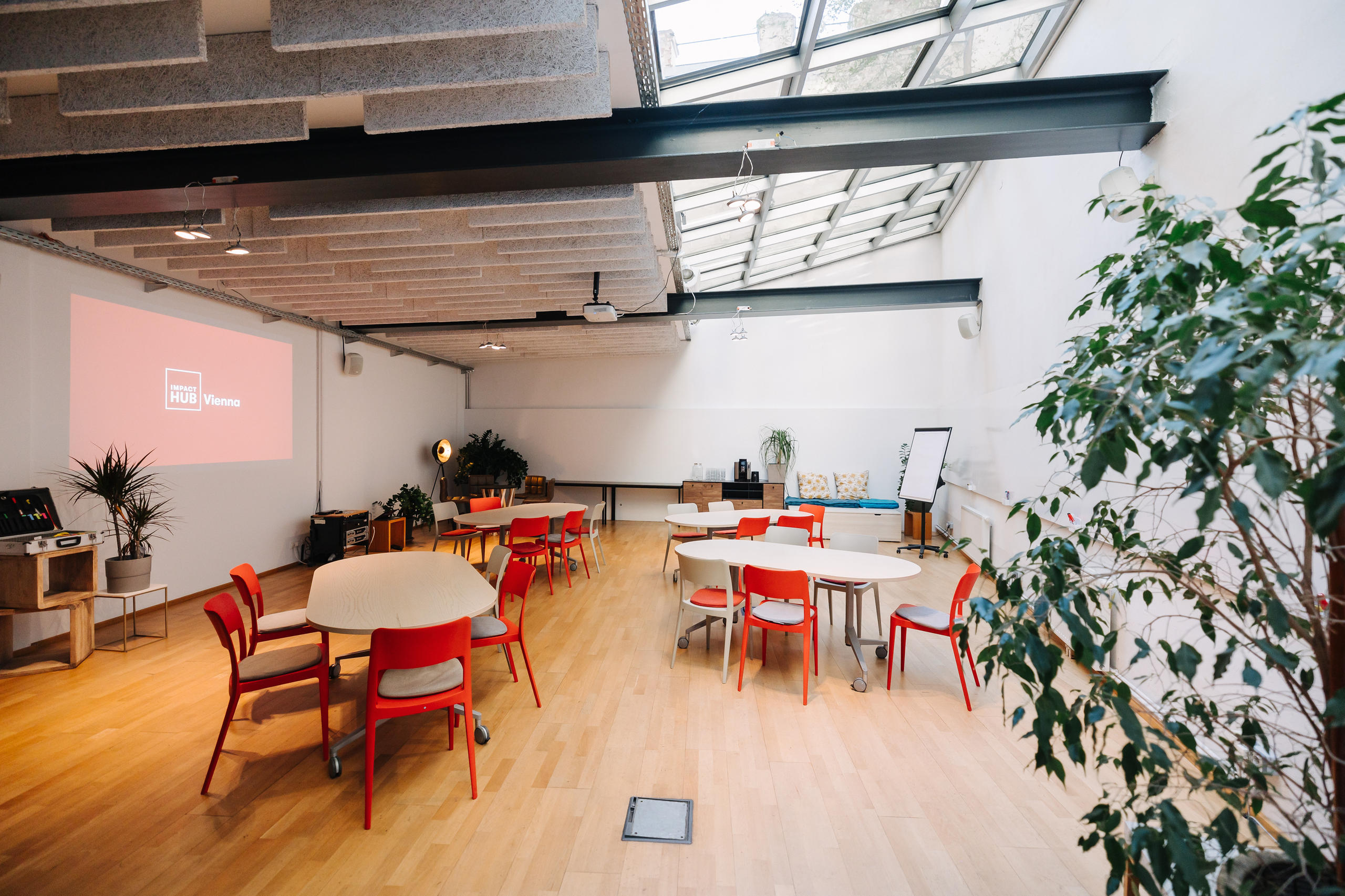 back to topicsImpact Hub Vienna is a diverse community of founders, companies, and NGOs bringing forward brave ideas for a better world. Our accessible, certified Green Location in Vienna’s vibrant 7th district combines Viennese charm with innovative design and accommodates over 150 participants - perfect for seminars, conferences, workshops, networking events, or hybrid formats. Our services include event design, catering, event technology, and Green Event certification, providing the perfect framework for impactful events.